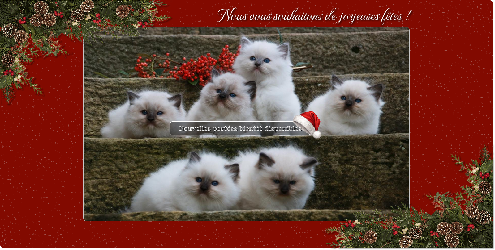 Comme vous pourrez le remarquer à travers les pages de notre site, toutes nos photos sont prises en extérieur. Elles sont donc prises en lumière naturelle : nous trouvons que les couleurs des saisons mettent les chats en valeurs. Pas d’inquiétude toutefois, nous sommes bien organisés lors de nos séances photos : notre fille, professionnelle dans le domaine du design et des arts, est derrière l’appareil et mon mari et moi-même préparons, amenons et ramenons les chats à l’intérieur au plus vite, surtout les chatons, afin qu’il n’y ai aucun risque pour leur santé.